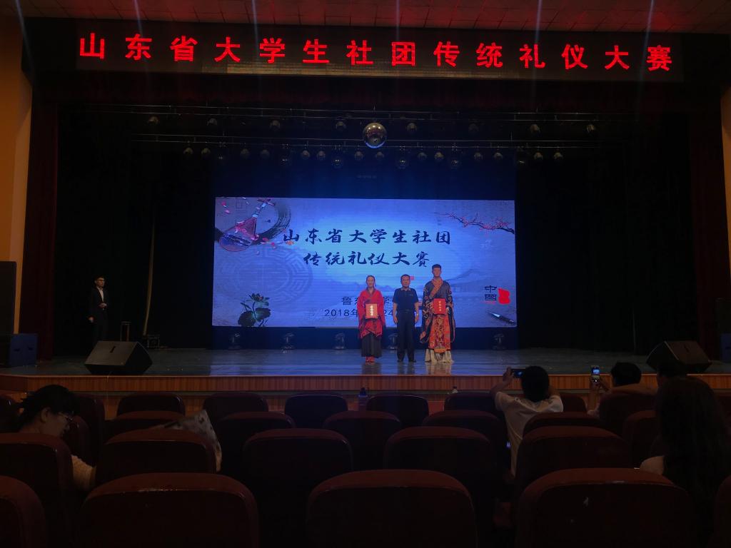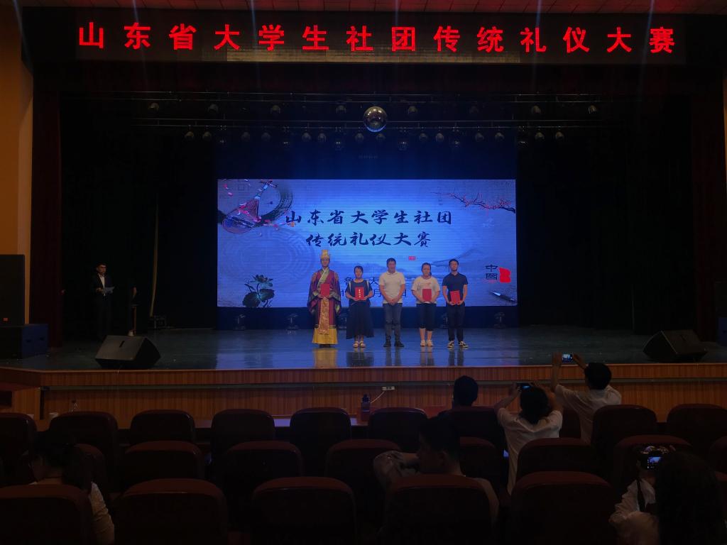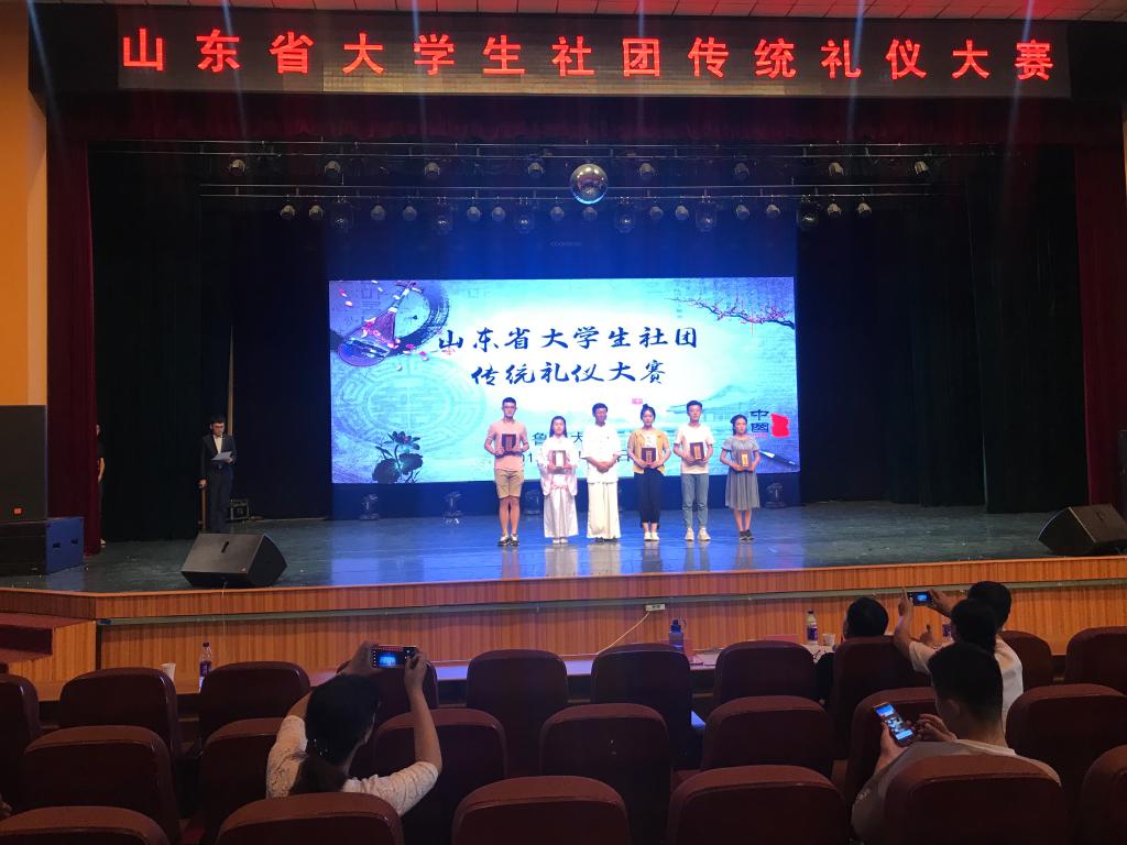 6月24日上午,由中共山东省委教育工委、共青团山东省委、山东省文化厅、山东广播电视台、山东省学生联合会联合主办的大学生社团传统礼仪大赛决赛在鲁东大学大学生艺术中心举行。国学教育专家李炳勇教授,丰金书院校长、烟台市芝罘区政协委员孙明军老师,中国文化遗产传承人、儒学导师程月老师担任比赛评委,并为获奖社团颁奖。