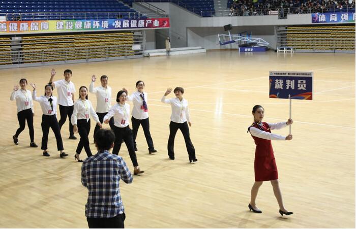 近日,烟台市第八届全民健身运动会在市体育馆开幕。我校50名青年志愿者以饱满的热情、专业的服务圆满完成了开幕式志愿服务工作。由我校外国语学院、文学院、商学院、生命科学学院、教育科学学院5个学院105名学生组成的健美操代表队参加了开幕式后的健美操比赛,以完美的舞台表现、惊艳的动作编排摘得比赛金奖。