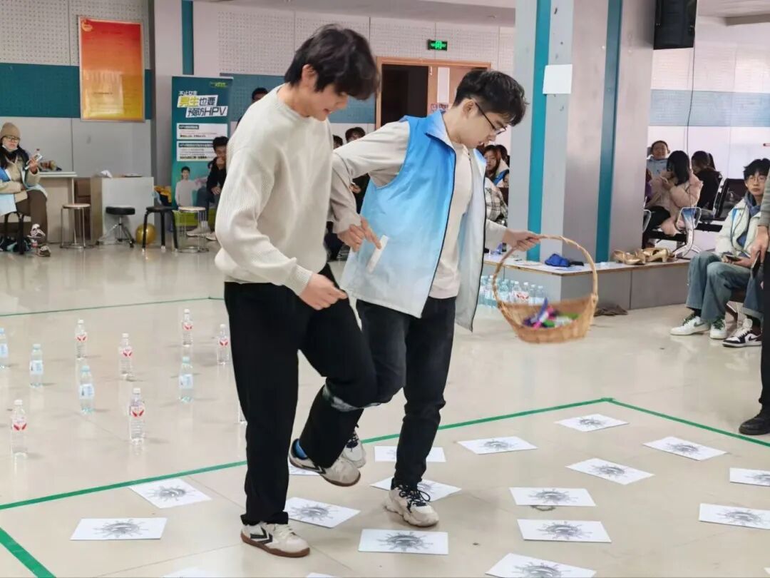 活动现场设置趣味互动专区,进行了三场游戏比赛:“你画我猜”“两人三足”和“答题套圈”。讲座现场的“你画我猜”环节,直接点燃了现场氛围,将严肃的科普变成了全员参与的趣味挑战;“预防艾滋病两人三足”环节一上线,瞬间点燃了全员参与热情,把枯燥的防护知识变成了默契与速度的双重比拼;“防艾答题套圈”环节没有枯燥单一的讲解,只有“答题闯关+套圈赢礼”的双重乐趣,让大家在欢呼声中轻松获得“防艾”干货。