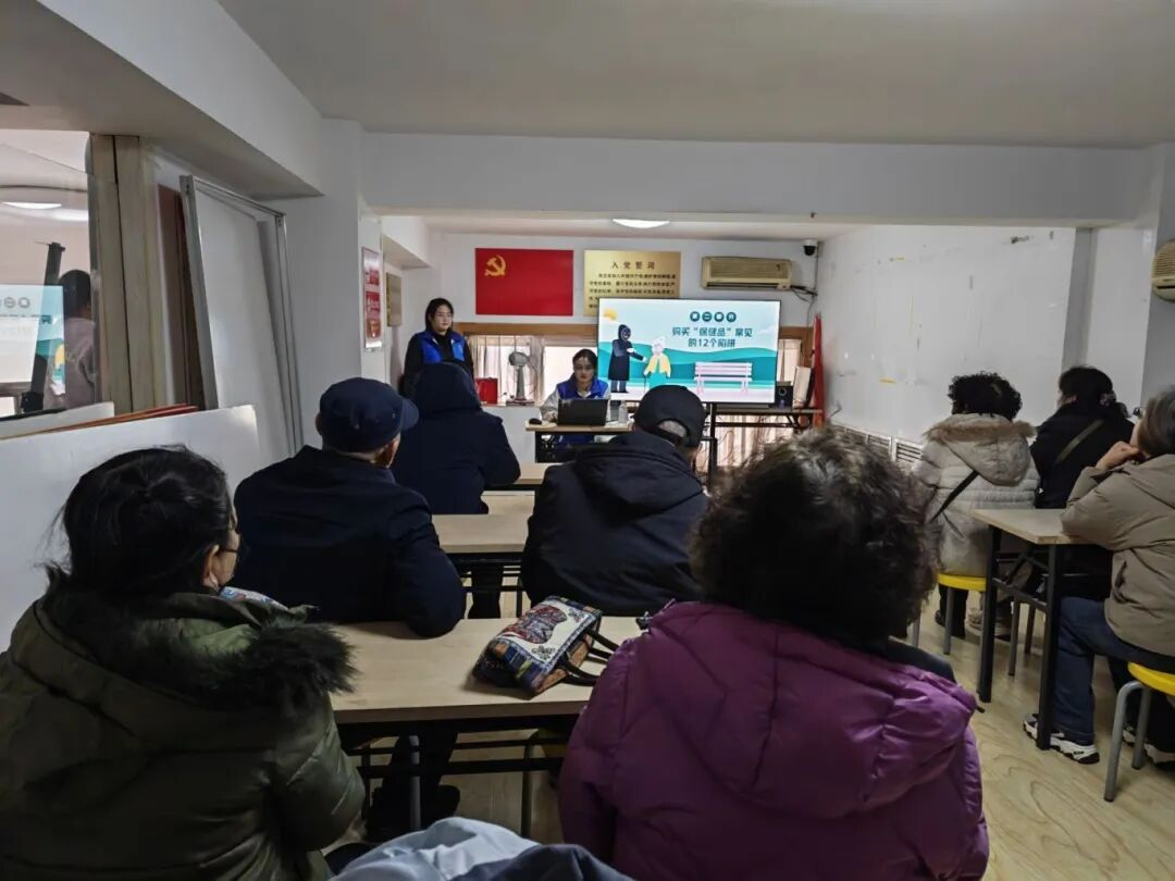 依托新闻与传播专业特长,志愿者们带来由学院学生自编、自演、自拍自制的反诈科普短视频,该作品荣获鲁东大学防范非法金融短视频大赛二等奖。大家以镜头为媒介、以影像为载体,现场播放影片、发放反诈宣传资料,用生动通俗的传媒表达,拆解养老诈骗、保健品诈骗等骗局,贴心守护老人“钱袋子”。